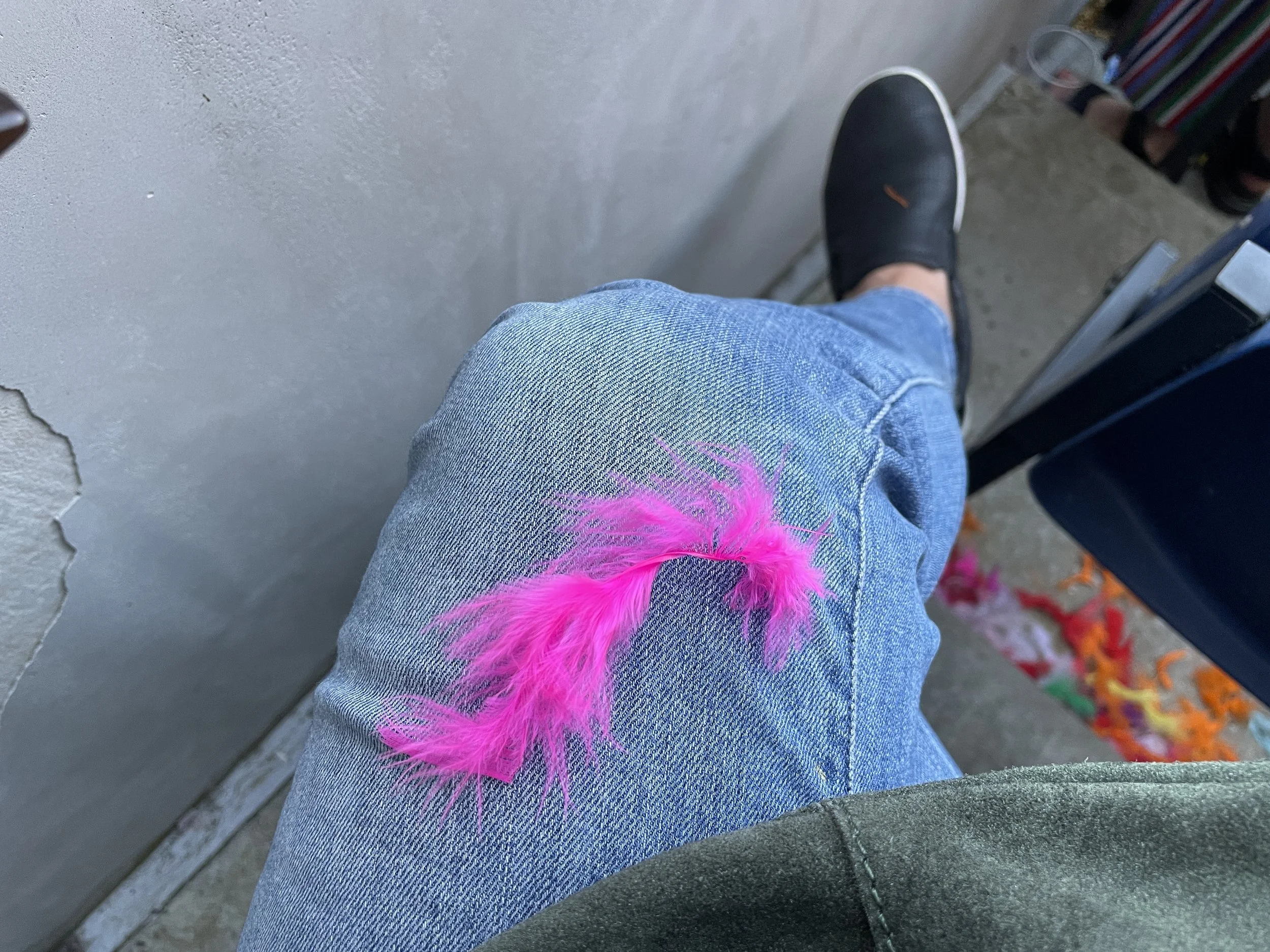 The stadium is mass insanity. Pink for days! Boas abounding. I have an assortment at home. I could have worn one had I known.