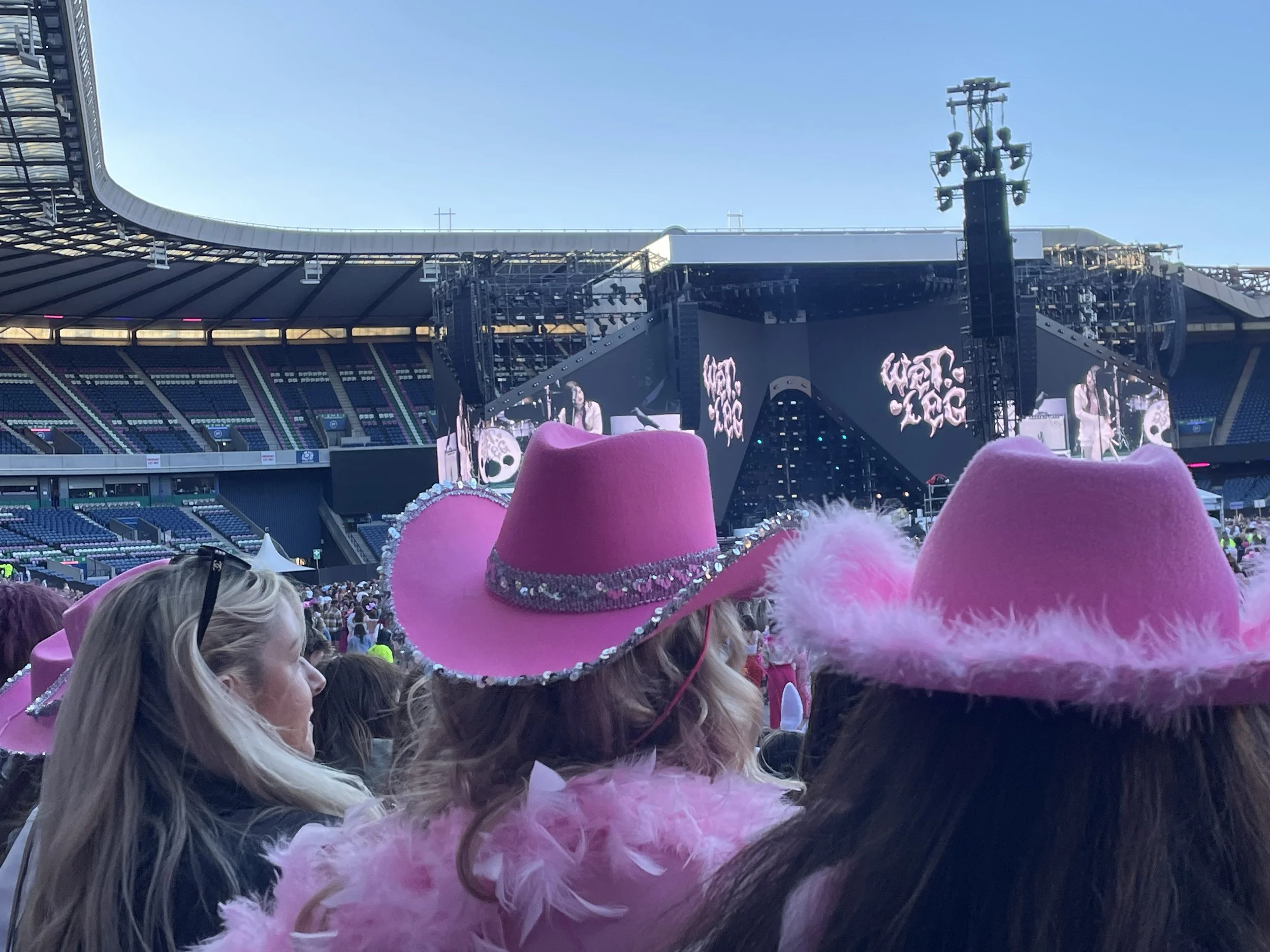 There are hundreds of girls in the streets of Edinburgh donning pink cowboy hats and boas. Did I miss a memo? Adam and I inquire: Harry Styles. They’re all walking home from his concert at Murrayfield.