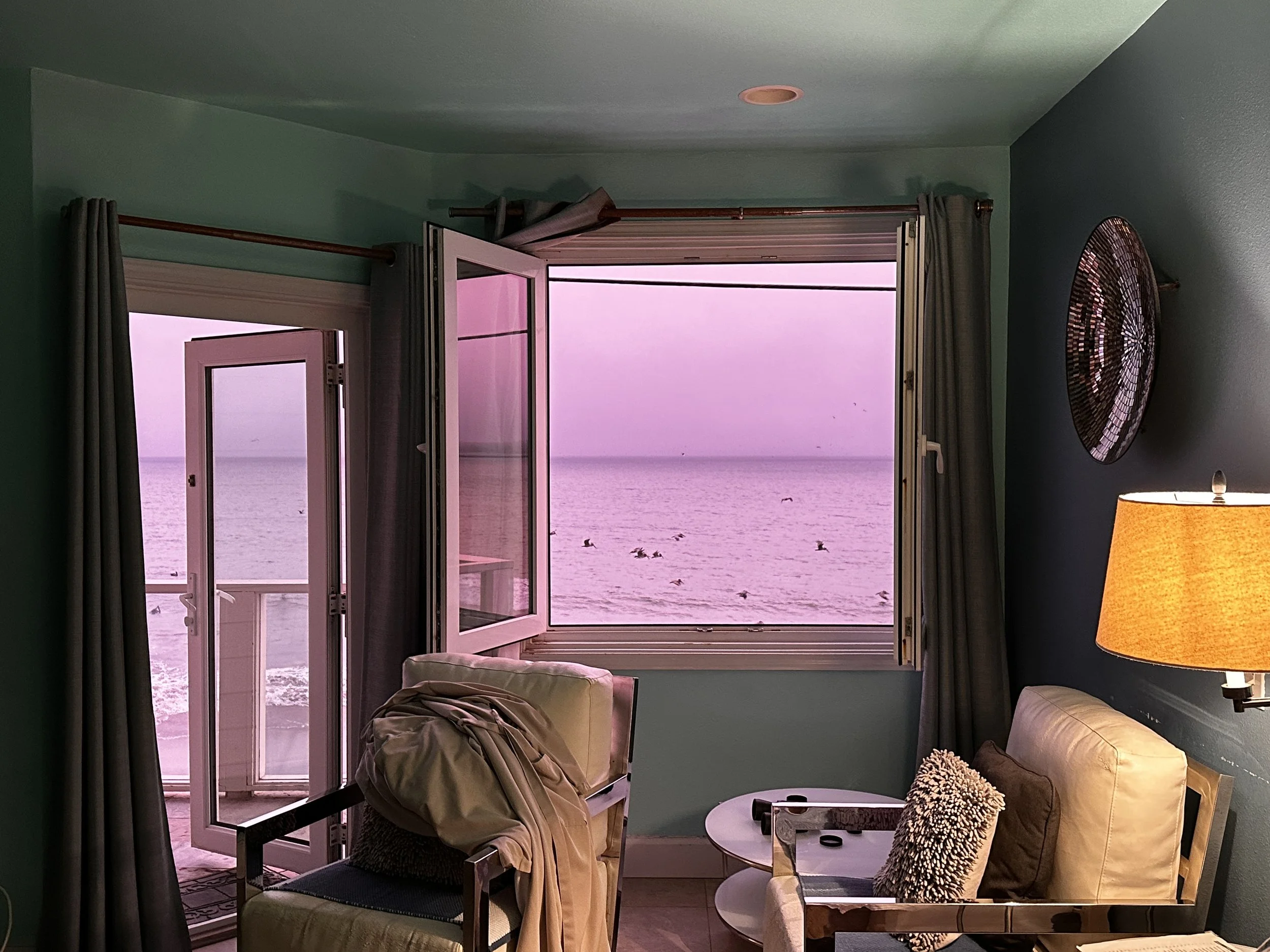 I podcast up to Carmel where the sand is like snow. I’m convinced no two “oceans” look alike. I’m happier staring at them than going in them. Ever since Jaws. Spend the night.