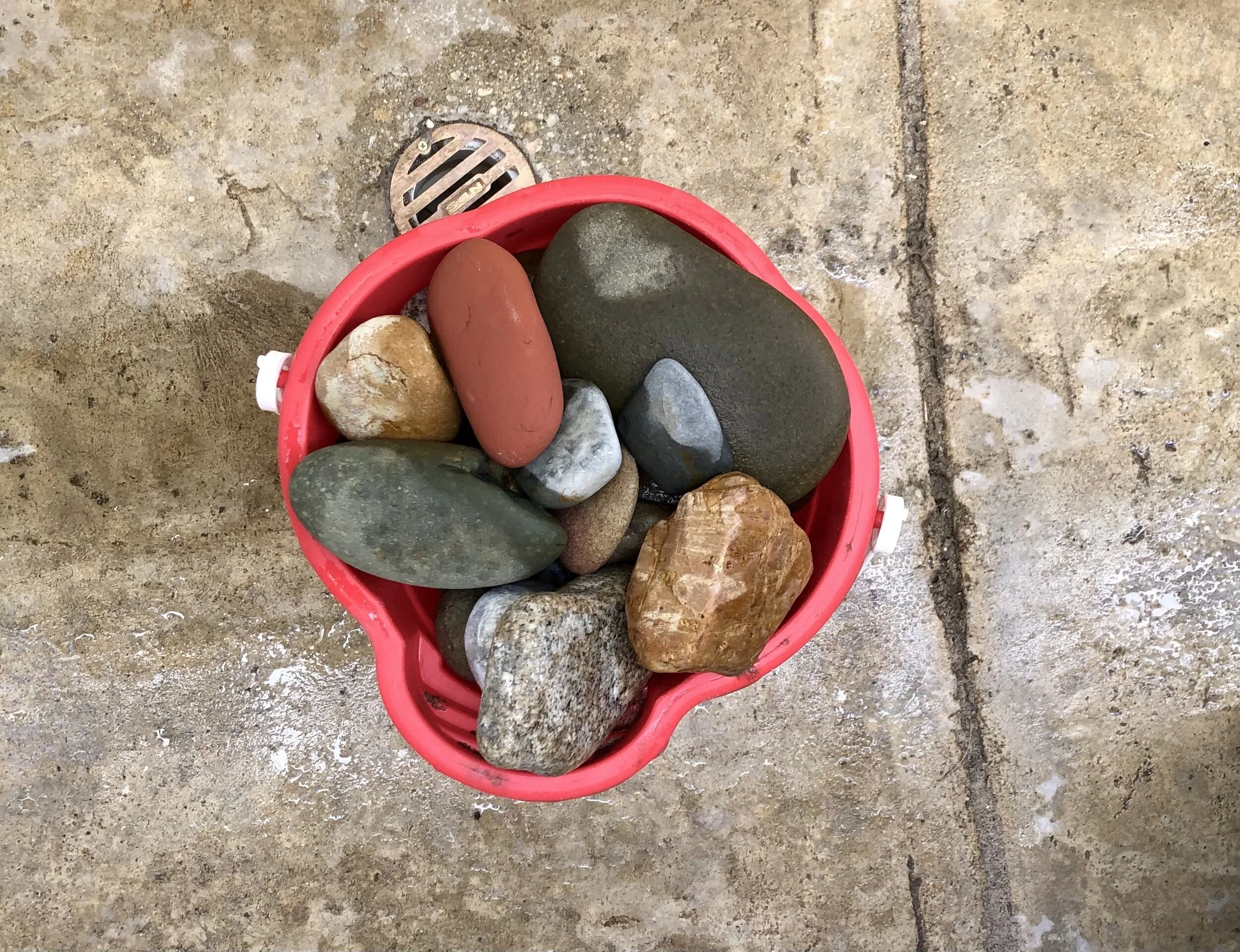 At first any gray stone would do. But on a day when incoming inventory increased I became more selective. Before bending down I considered size, smoothness of surface, unusual color or shape — walking right past the ordinary. Now there were coral rocks, green rocks (which would pop nicely against the backdrop of all the gray), heart-shaped rocks, even rocks with geometric designs. I couldn’t collect them fast enough and I couldn’t stop...you just can’t get this stuff at Pottery Barn.